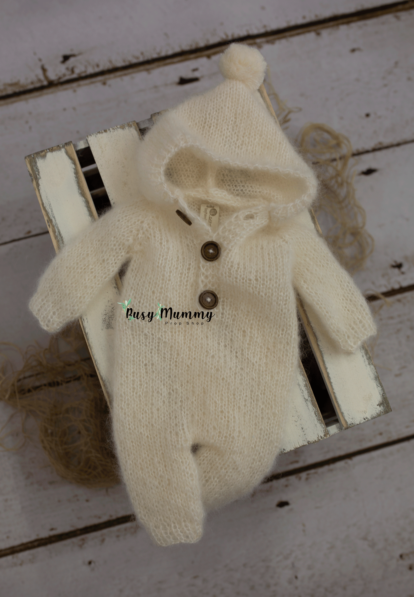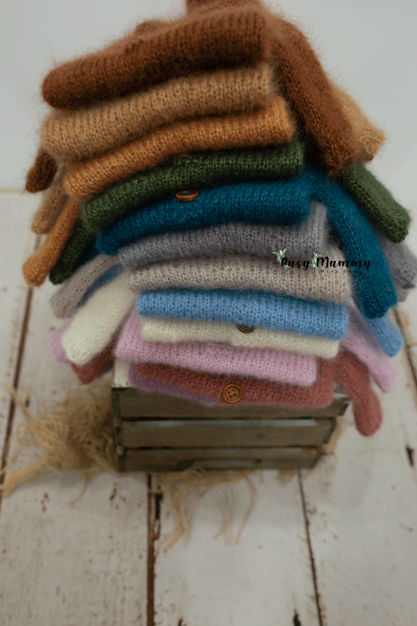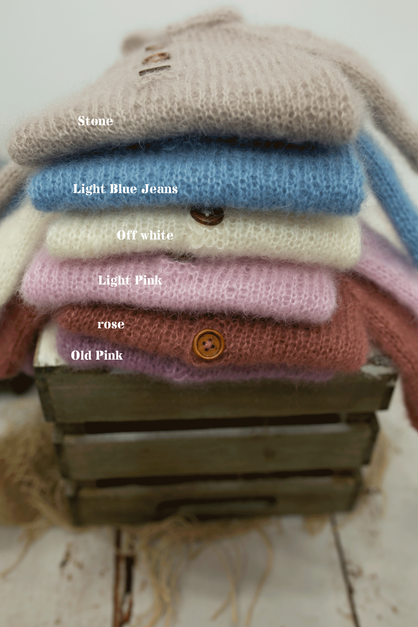Newborn knitted pyjama, open foot, blue, white, pink, READY TO SEND