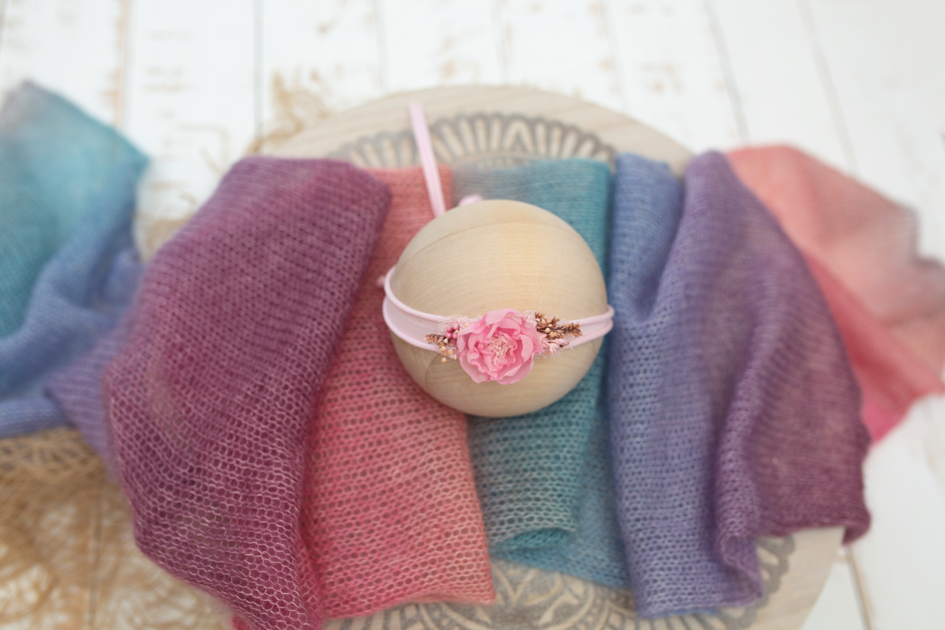 Newborn knitted wrap, rainbow, girl, headband,mohair, Ready to send