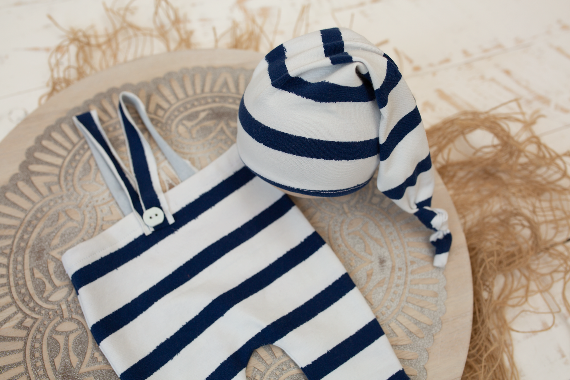 Newborn navy, white, boy, set, sleep hat, pants, stripe, Ready to send