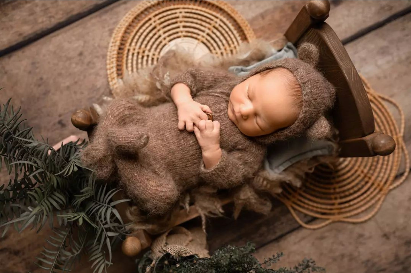 Newborn size, knitted bear outfit, neutral, girl, boy, Ready to send