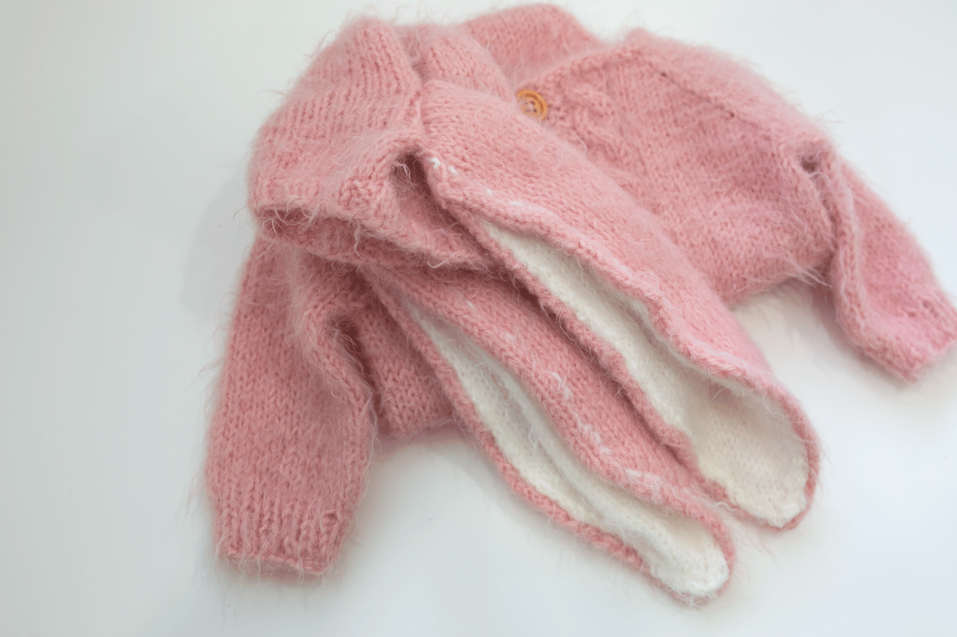 Super soft knitted romper and bunny bonnet, easter, pink, sitter, 3 6 month, Ready to send